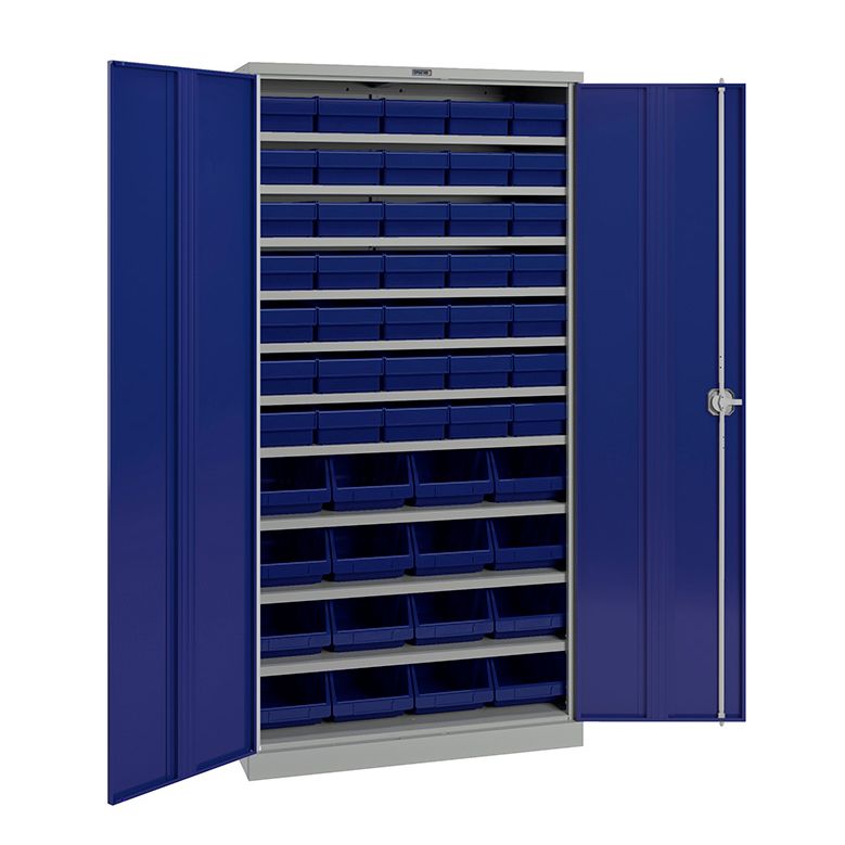Корпус шкафа, полки – серый (RAL 7038, шагрень), двери – синий (RAL 5002, шагрень)