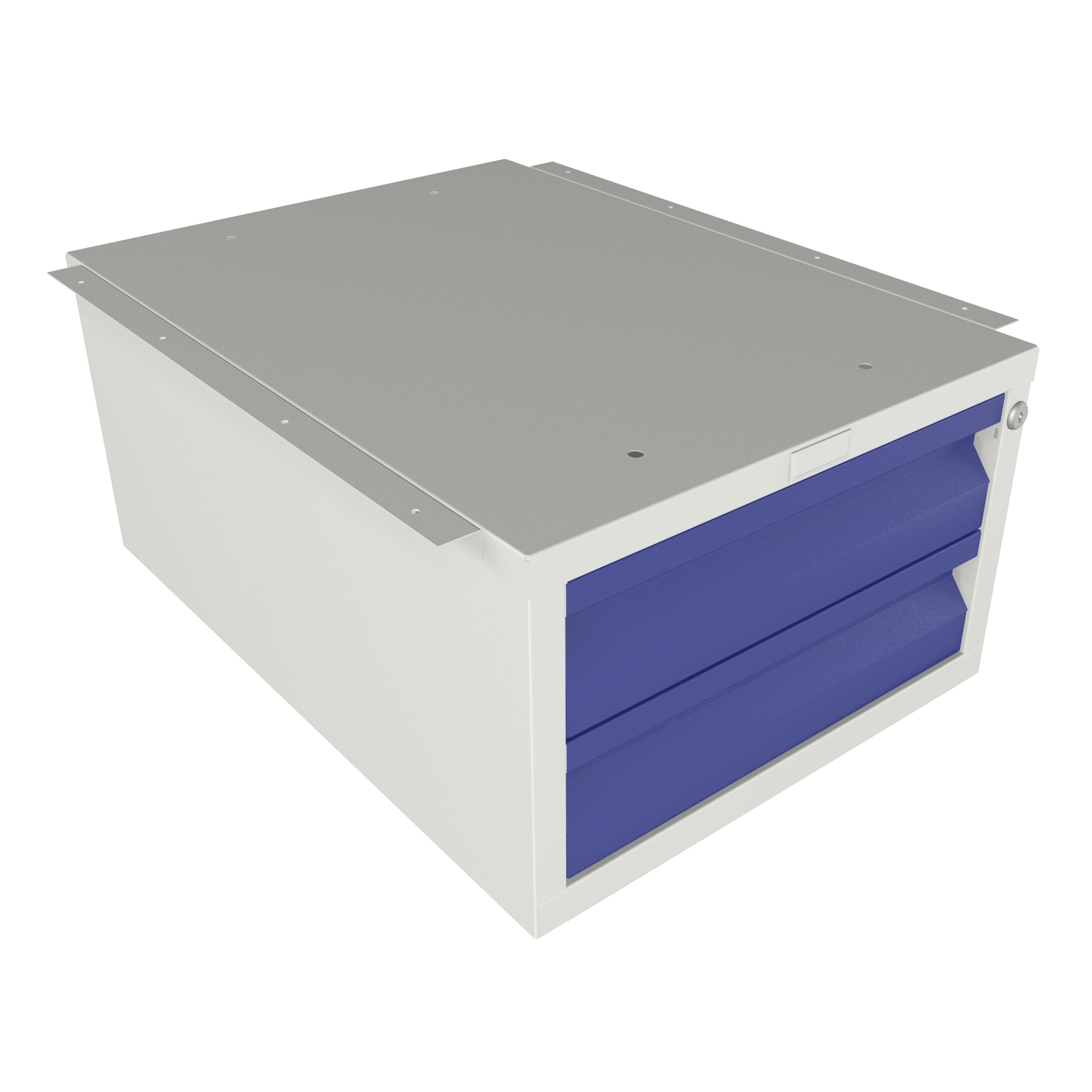 Опоры – серый (RAL 7038, шагрень), экран и косынки, ящики – синий (RAL 5002, шагрень)